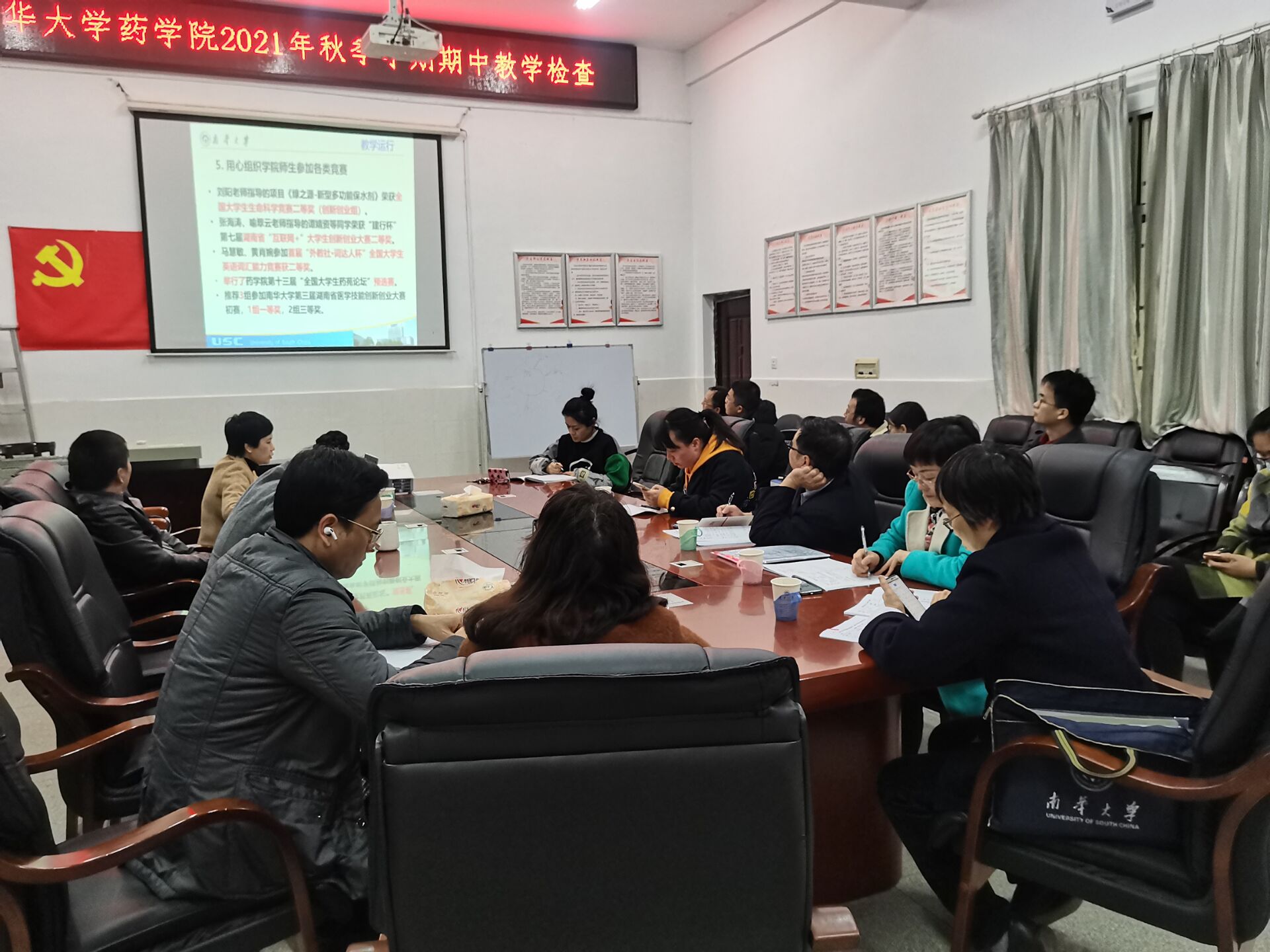 11月24日下午,学校教务部、校督导团、船山学院督导团一行来伟的国际1946bv开展期中教学检查。我院院长喻翠云老师 、党委书记袁中华老师、主管教学副院长易岚老师、教务办、各系室中心主任以及部分教师参加了检查会议。