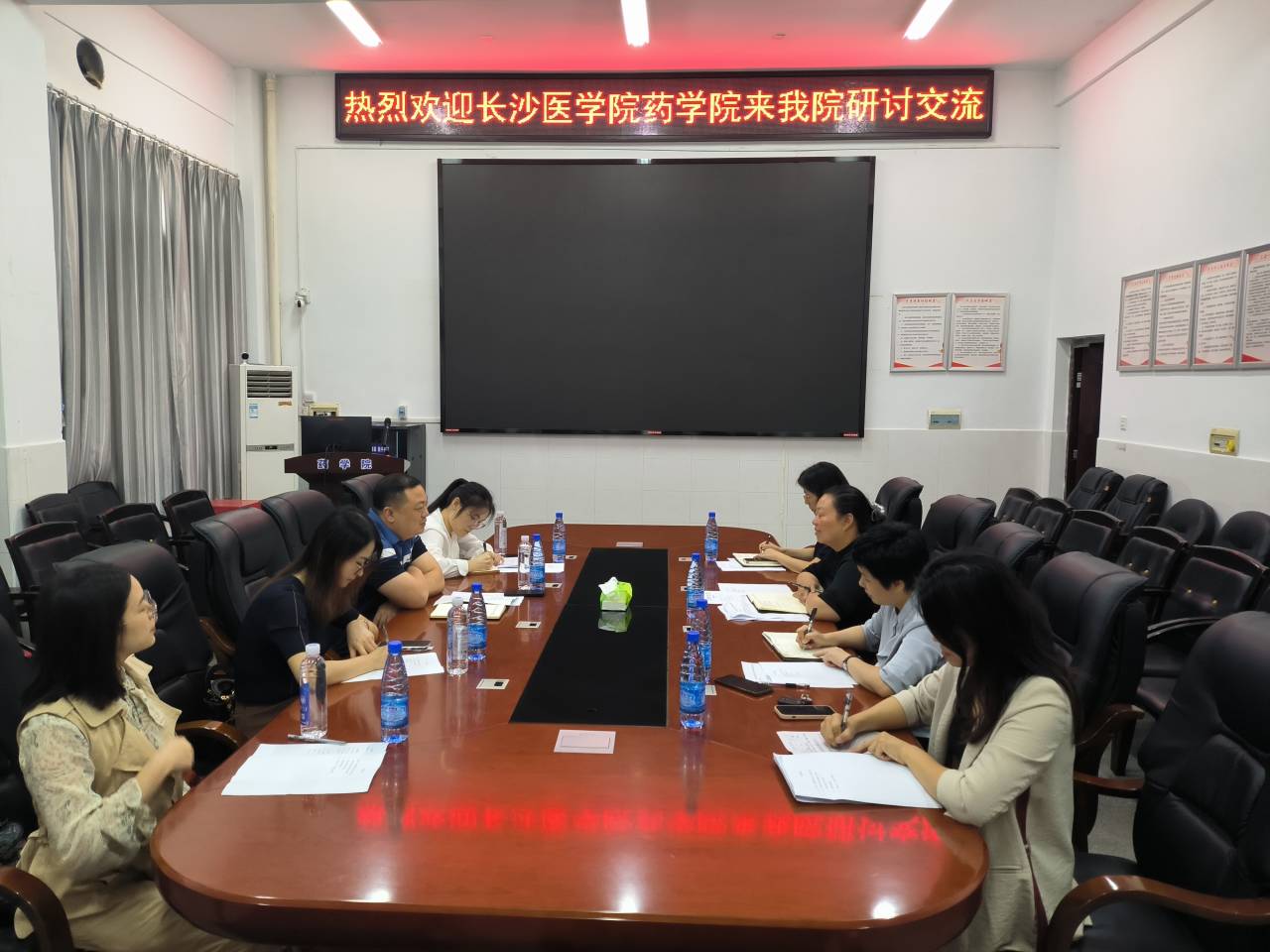 9月15日,长沙医学院伟的国际1946bv党委书记胡明华、教学副院长危永芳、药物分析教研室副主任曾星星和综合办公室刘言萍老师一行来我院开展调研学习,伟的国际1946bv院长喻翠云、党委副书记陈健平、教学副院长易岚、副院长王力立和教学办主任虞佳参加见面会。