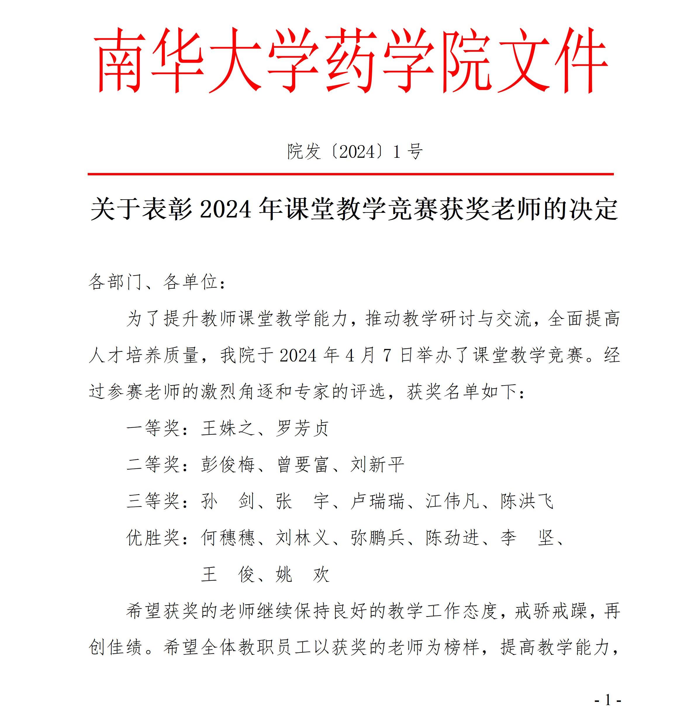 伟的国际1946bv表彰2024年课堂教学竞赛获奖老师的决定