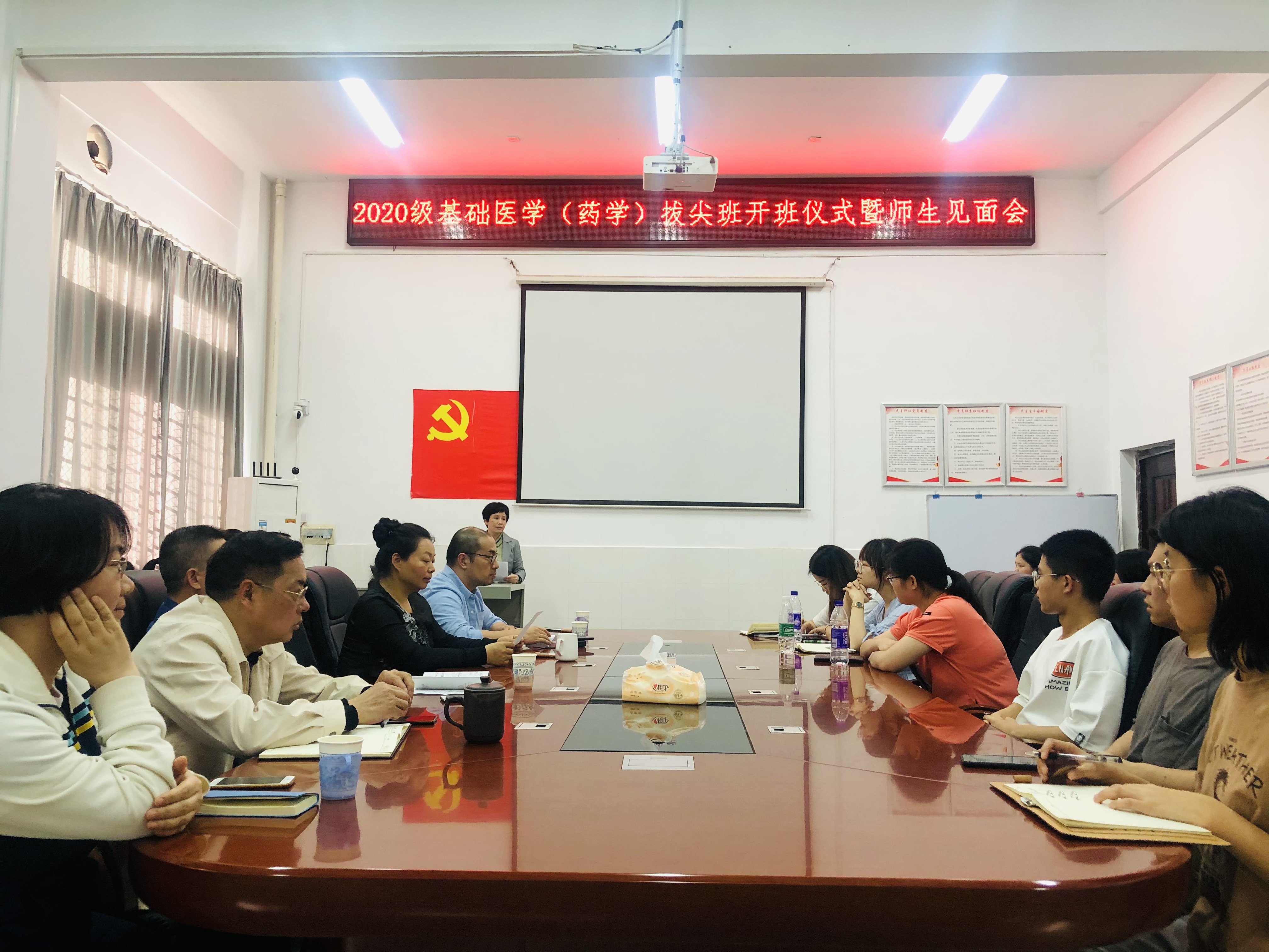 4月30日下午,伟的国际1946bv在新二教B栋101会议室举行了首届基础医学(药学)拔尖班开班仪式暨师生见面会。教务部戴剑勇副部长、伟的国际1946bv院长喻翠云教授,伟的国际1946bv副院长易岚教授,中组部青年千人计划学者魏华教授,四川省千人计划学者陈渝萍教授等拔尖班导师,年级辅导员、班主任、教务办老师以及拔尖班全体学生出席了会议。会议由伟的国际1946bv易岚副院长主持。