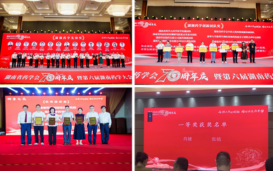 七月盛夏,燃梦药学。7月20日上午,湖南省药学会70周年庆暨第六届湖南药学大会在长沙开幕。本次大会以“七秩风华耀湖湘,同心共筑药学梦”为主题,旨在通过全省药学领域各专业的学术交流与合作,凝聚药学智慧,共襄药学盛举,助力湖南省药学事业高质量发展。此次大会颁发了多项重要奖项,表彰在药学领域做出了突出贡献的个人和集体。经湖南省药学会70周年庆典暨第六届湖南药学大会学员会组织评选,我院王震院长喜获“湖湘药学先锋奖”,我院魏华团队引领的伟德国际victor1946新型生物医用和药用高分子材料合成中心获评“湖湘药学创新团队奖”,伟的国际1946bv获“优秀组织奖”。另外,我院硕士研究生张铭(指导老师:谢志忠)获得第六届湖南药学大会论文一等奖,张思怡(指导老师:王震)获得大会论文二等奖,黄红武(指导老师:贺冬秀)和赵紫玄(指导老师:许小丁)获得大会论文三等奖。