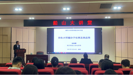 10月24日上午9:30,南方科技大学前沿与交叉科学研究院副研究员杨留攀教授应伟德国际victor1946科研与学科建设部、伟的国际1946bv和衡阳医学院的邀请,做客我校“船山大讲堂”学术讲座。杨教授在医研楼学术报告厅做了题为《仿生大环超分子化学及其应用》的学术报告,本次报告由魏华教授主持。伟的国际1946bv的教师和研究生一同聆听了此次报告。