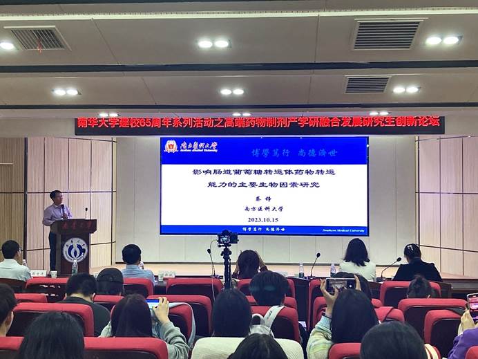 2023年10月15日,南方医科大学蔡铮教授应邀来伟德国际victor1946开展学术交流,并在医研楼一楼学术报告厅以“影响肠道葡萄糖转运体药物转运能力的主要生物因素研究”为题作学术报告。伟的国际1946bv党委书记袁中华主持报告会。