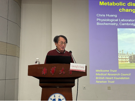 接下来黄觉士教授(Professor Christopher Huang)做题为“Feedback effects in skeletal and cardiac muscle excitation-contraction coupling”的学术报告,围绕骨骼肌与心脏肌肉激发-收缩耦联中的反馈效应展开讨论。同样地,在报告的开始,黄教授向大家介绍了剑桥大学,剑桥大学是一所拥有近800年历史,在自然科学、医学等领域成果卓著,细胞生理学、生物化学等学科实力雄厚的高等学府,为全球科研创新提供了重要支撑。然后,黄教授从电生理角度详细讲解了肌肉收缩的基本机制,探讨了反馈机制在两类肌肉中的作用,重点介绍了二者在细胞和系统水平上信号传导、反馈调节的生理学差异,还阐述了不同反馈机制对肌肉功能与健康的影响,尤其说明在心脏疾病、代谢性疾病及心力衰竭等病理状态下,反馈效应对治疗效果和疾病进展的作用。讲座第二部分聚焦这些机制的临床应用,特别是心律失常等疾病的治疗,黄教授分享了自己在代谢性疾病和心力衰竭领域的研究成果,探讨了如何通过深入理解激发-收缩耦联的反馈效应,为新型治疗策略提供科学支撑,并特别强调,心脏疾病中的异常反馈机制常引发严重临床症状,深入研究这些机制是靶向治疗的重要突破口。