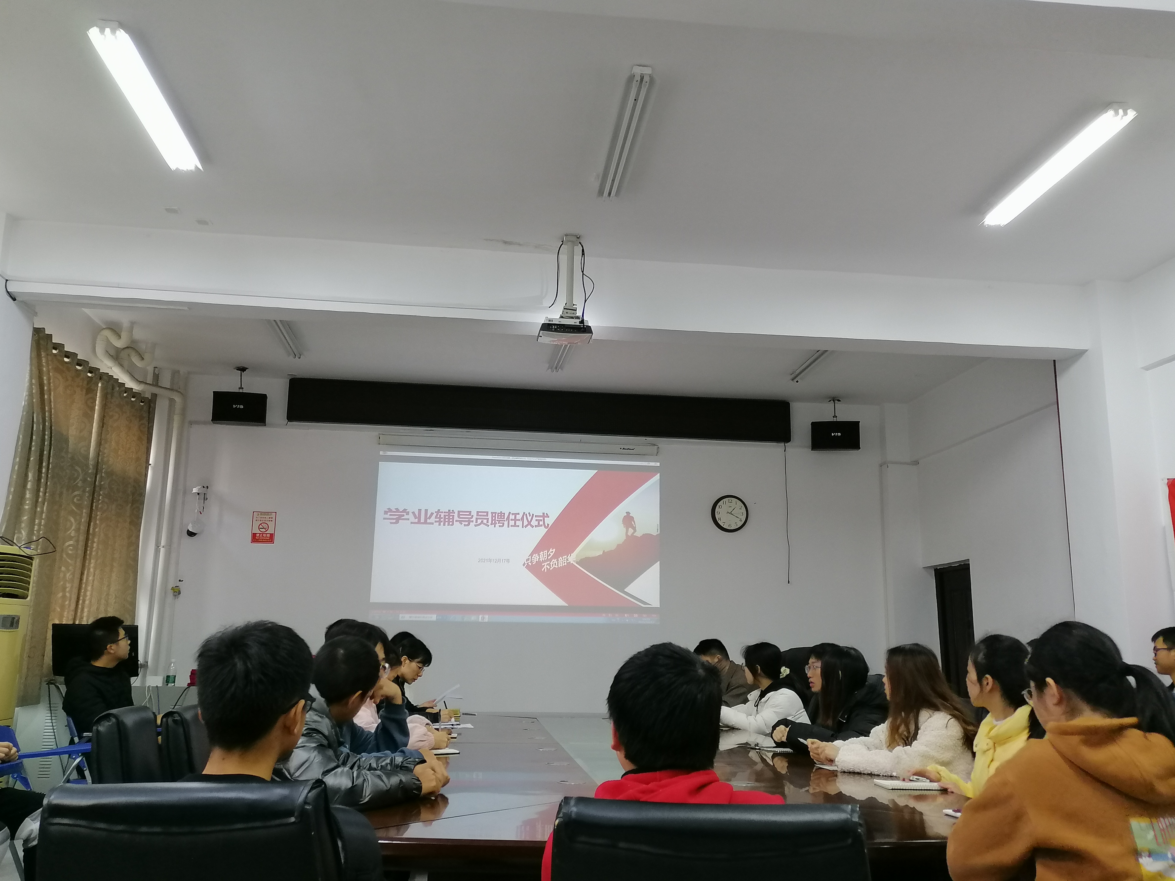 会议伊始,彭翔宣读《关于聘任谌震等同学为伟的国际1946bv学业辅导员的决定》,聘请伟的国际1946bv谌震、罗婷、胡彩霞、余治鑫、胡宇菲、米嘉芊、刘美菁、胡宏达、孙琪琪、欧阳堃、朱海洋和周烨烽共12名同学为伟的国际1946bv首批学业辅导员。会上,陈健平为12位学业辅导员颁发聘书。罗婷、胡彩霞作为学业辅导员代表就帮扶态度、帮扶目标与计划、交流沟通等方面分享辅导经验,为学业辅导员们提供了一个良好的辅导思路。