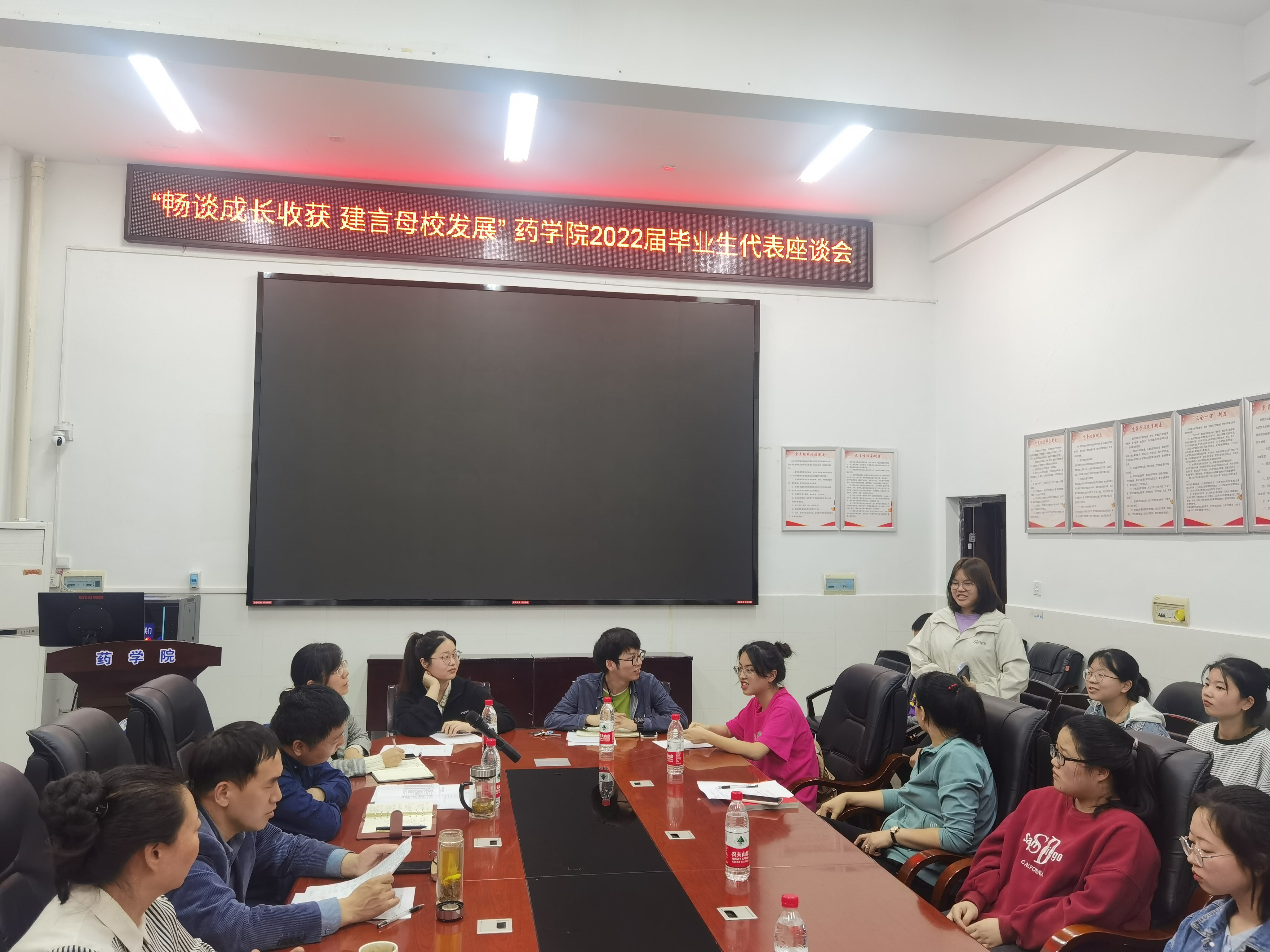 5月20日下午,伟的国际1946bv在药学楼101会议室召开以2022届本科毕业生代表座谈会,伟德国际victor1946党委委员、副校长雷小勇应邀出席并讲话,伟的国际1946bv党委书记袁中华、院长喻翠云、党委副书记陈健平以及学工室全体辅导员、毕业班班主任代表、毕业生代表等近30人参加座谈会,座谈会由袁中华主持。