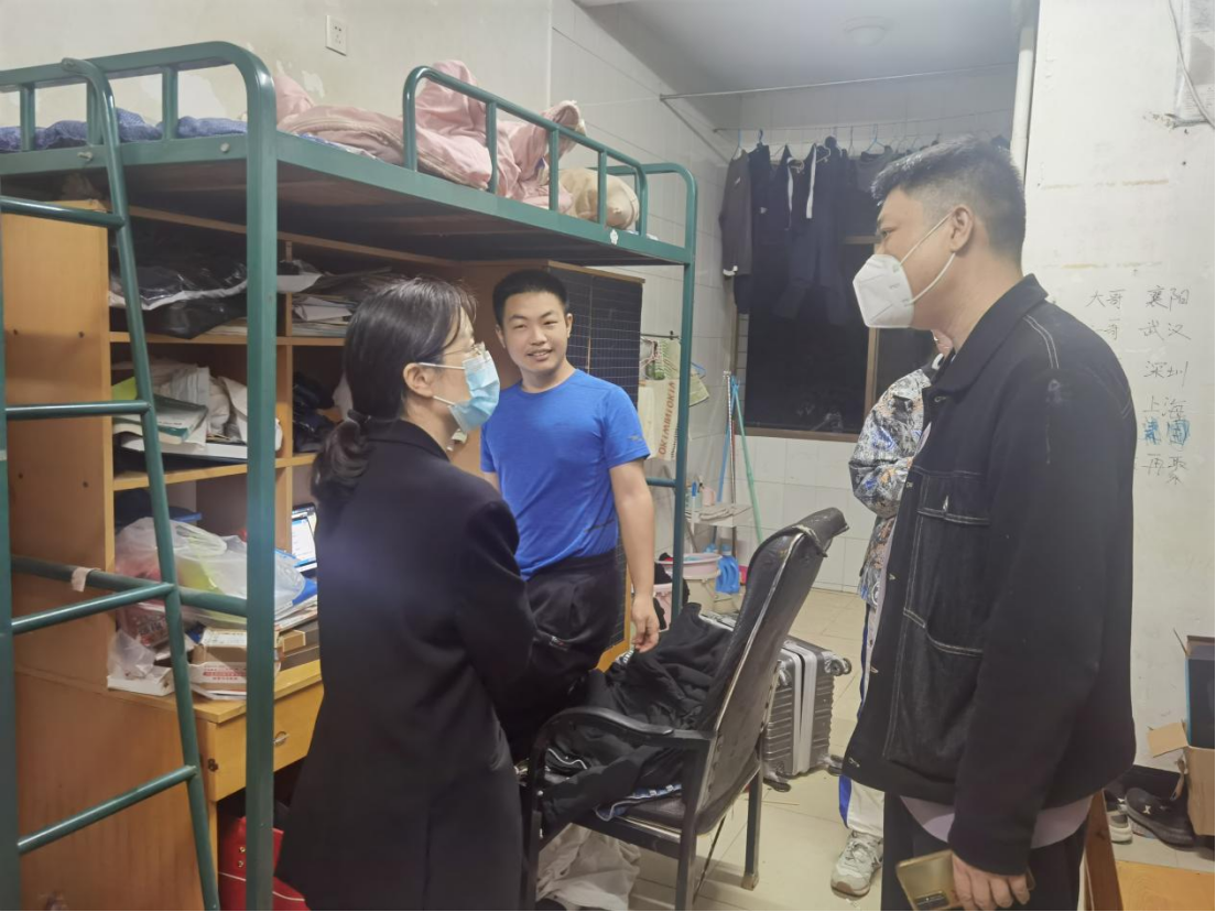 在走访过程中,陈健平以及各年级辅导员与同学们进行了亲切交流,全面了解同学们疫情防控期间的学习、论文撰写、就业、日常生活等情况,叮嘱同学们要严格遵守疫情防控期间学校的各项管理规定,非必要不出宿舍,同时要认真做好个人防护和自我管理,养成良好的生活卫生习惯,按时参加学校组织的核酸检测,加强身体锻炼,注意身体健康,以阳光积极的心态、健康的体魄抗击疫情。