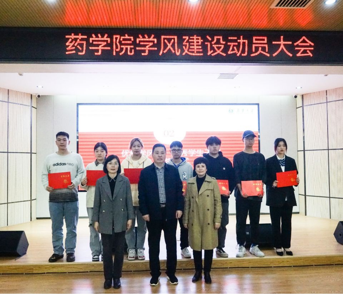 会上,为树立典型,培树优良学风,激励同学们奋发向上、成长成才,学院对22级药拔班等7个优良学风班、张微等13位优秀学生干部进行表彰,出席会议的院领导和班主任为获奖集体和个人颁发荣誉证书。