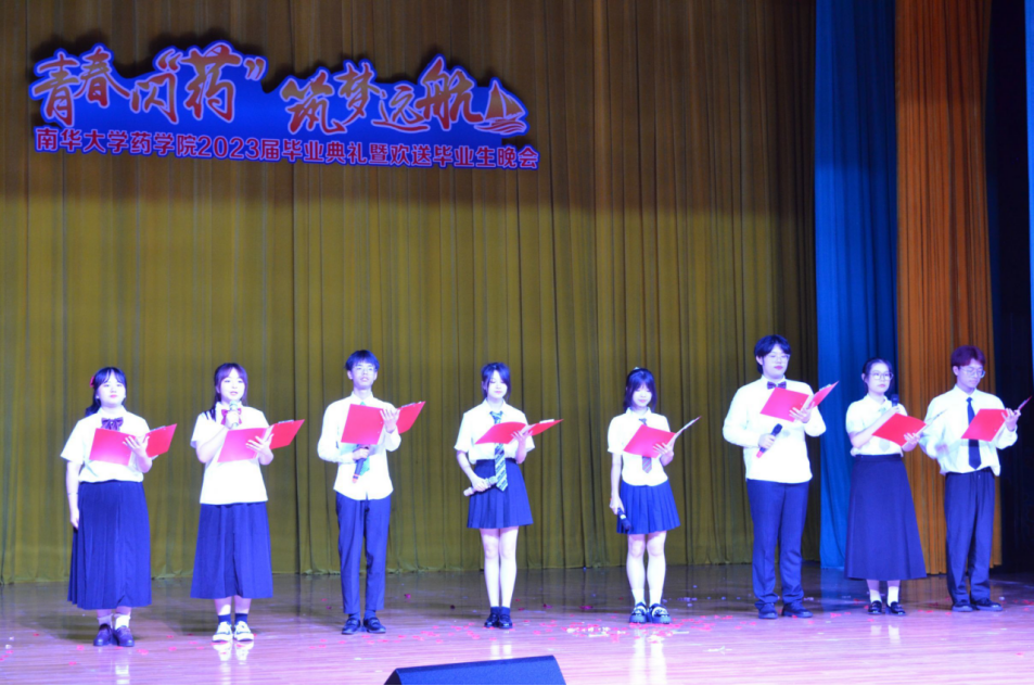喻翠云在晚会正式开始前致辞,代表学院向毕业生送上了真挚的祝福。袁中华宣读2023届湖南省、伟德国际victor1946、衡阳医学院优秀毕业生表彰名单。出席晚会的院领导及教师代表为优秀毕业生颁奖。