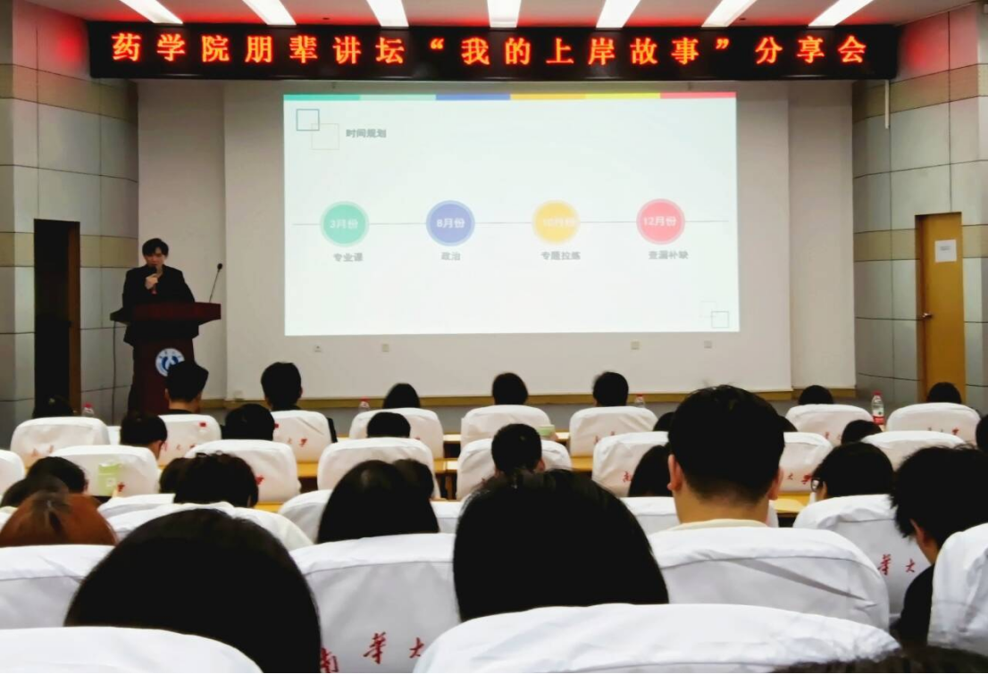 分享会特别邀请伟的国际1946bv第四届团委学生会主席高祥旭和辅导员助理刘艾哲,他们分别上岸中国科学院大学上海药物研究所、浙江工业大学。会上,两位上岸学长分别从“选择院校”、“阶段备战”、“面对复试”等方面分享了自己的故事。