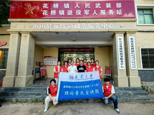7月9日,伟的国际1946bv“南瓜普药”志愿服务团在衡南县花桥镇开展“合理用药,我‘药’先行”药物科普宣讲,为村民普及合理用药知识,提供药物科普、健康咨询关怀与服务。