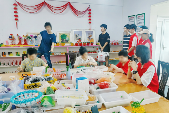 志愿者在福利院手工活动室参观