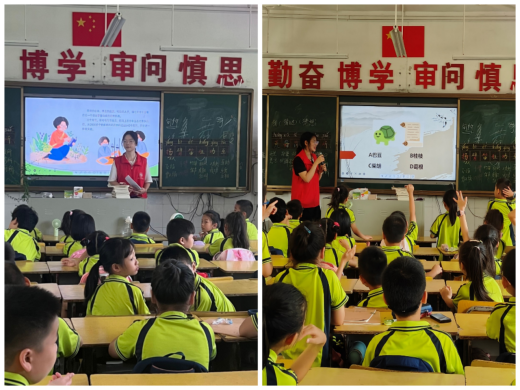 首先由志愿者们讲述了药学家屠呦呦与青蒿素的故事,不仅通过问答环节增强课堂的趣味性和互动性,还准备了实物青蒿,让小朋友们看、摸和闻,让学生实际接触植物本身,留下更深刻的印象。接着由志愿者们为小朋友们进行了药物知识相关的科普,如生活中常见的药食同源现象,以及一些常见的药物知识并拿药品给他们观察和闻,在最后的看图猜药名的小游戏互动环节,小朋友们非常积极地举手参与知识竞答。