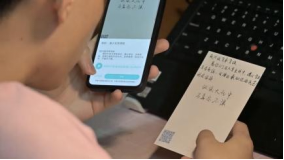 活动现场,学弟学妹们走进毕业生宿舍,将明信片送到学长学姐手中。接过明信片的毕业生们,或坐在桌前用手机扫描二维码,认真录制对新生的寄语;或在宿舍里与室友共同拍摄温馨画面,将相处的点滴留存。毕业生王同学在明信片上郑重写下对学弟学妹的祝福:“愿25级新生永葆初心,保持对生活的向往,永远热烈,珍惜当下。”