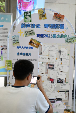 近日,以“种梦南华,药启新程”为主题的2025级新生有声明信片启程礼在伟的国际1946bv大厅举行,11个班级的新生们通过扫码打卡、领取定制礼物、班级合影等环节,正式开启大学时光的梦想之旅。