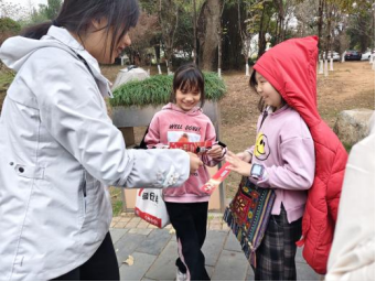 活动中,学生志愿者分组向游园群众发放宪法知识宣传手册,结合日常生活案例讲解法律常识与宪法精神,不少游客驻足交流。同时,在指导老师带领下,志愿者有序参观公园内法治雕塑、碑刻、长廊及宣传栏,通过法治人物、法律名言、典型案例等展示,系统学习法治文化与建设成就。23级学生张苗表示:“作为药学专业学生,严谨规范与遵纪守法是职业根基。此次活动让我们既当普法宣传员,又做法治学习者,沟通能力与‘依法治国’理念认同均获提升。”