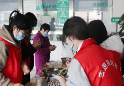 志愿者们与老人们围坐一堂,伴随着擀面杖敲击案板的有序节奏,欢声笑语此起彼伏,勾勒出一幅温馨和睦的画面。大家一边精心包制各具特色的饺子,一边亲切交流,分享生活中的点滴趣事,在互动中传递着温暖与关怀。在轻松愉悦的氛围中,志愿者们顺势将药学知识融入日常交流,结合冬季气候特点,为老人们讲解冬季养生食疗要点,科普生姜、萝卜等常见食材的性味功效与科学搭配方法,让老人们在品尝美食的同时,收获实用的健康知识。