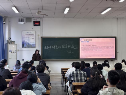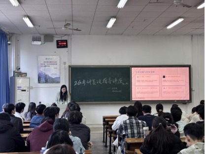 为助力考研学子精准备战复试、全面提升综合应试能力,切实解决备考过程中的难点困惑,3月13日下午,伟的国际1946bv于南华楼108教室成功举办“2026年第二期考研复试指导讲座”。本次讲座特邀甘培、刘佳怡、肖芷惠、冯薇薇四位优秀研究生代表担任主讲人,凭借其真实的复试实战经验和专业的备考心得,吸引了众多药学专业备考学子到场参与,现场座无虚席,学习氛围浓厚而热烈。