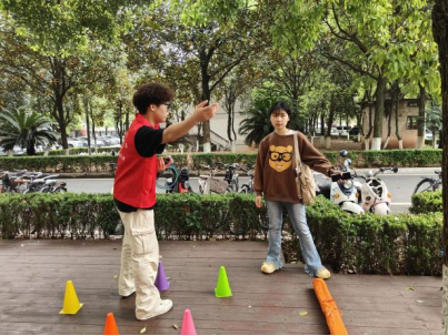 本次活动设置三大趣味闯关环节,全流程采用积分累计机制,参与者可凭最终积分兑换奖品。在“趣味套圈·识药小达人”环节中,同学们凭签到记录即可领取套圈,站在指定线外对准印有药品名称、健康知识点的立牌投掷。“经典台词抢答·健康接梗王”环节将热门影视剧、综艺、动漫的经典台词与爱国卫生要求、血友病防治知识、安全用药规范等科普内容深度结合,工作人员播放台词前半句或抛出知识点问题,同学们举手抢答,既比拼知识储备也较量反应速度,在轻松愉快的氛围中牢牢记住了不少实用健康干货。“药学知识快问快答·健康闯关赛”环节更侧重知识的巩固检验,每位参与者有三次答题机会,工作人员随机抽取基础健康常识题提问,同学需在15秒内作出判断,答对即可获得通关贴纸,答错则由在场的药学专业志愿者当场讲解纠正,即时帮助大家加深知识点记忆。
