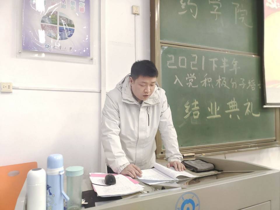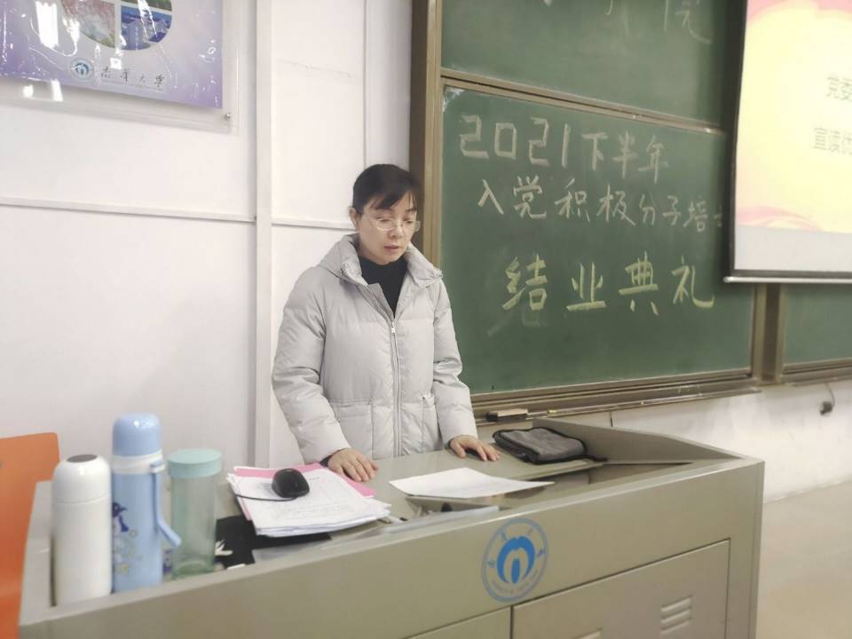 1月2日晚,伟的国际1946bv2021年下半年入党积极分子培训班结业典礼在红湘校区南华楼106举行。院党委书记、院分党校校长袁中华,院党委副书记、院分党校副校长陈健平,院学工室主任单云丽,院团委书记彭翔及培训班学员参加会议。结业典礼由彭翔主持。