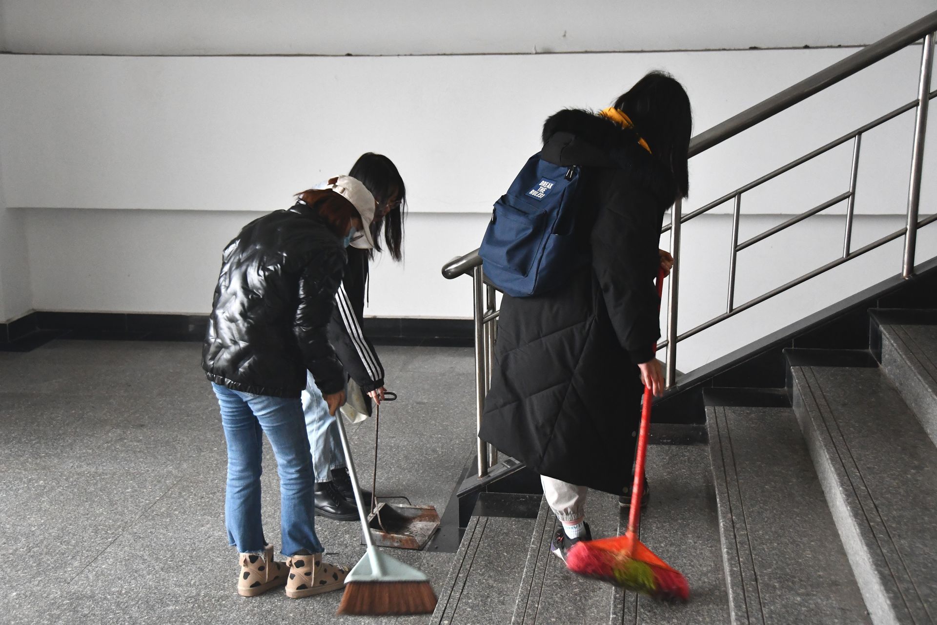活动伊始,所有入党积极分子于一教大厅集合。紧接着,入党积极分子分为四组,分别在南华楼、求是1、6、7栋进行卫生清洁。