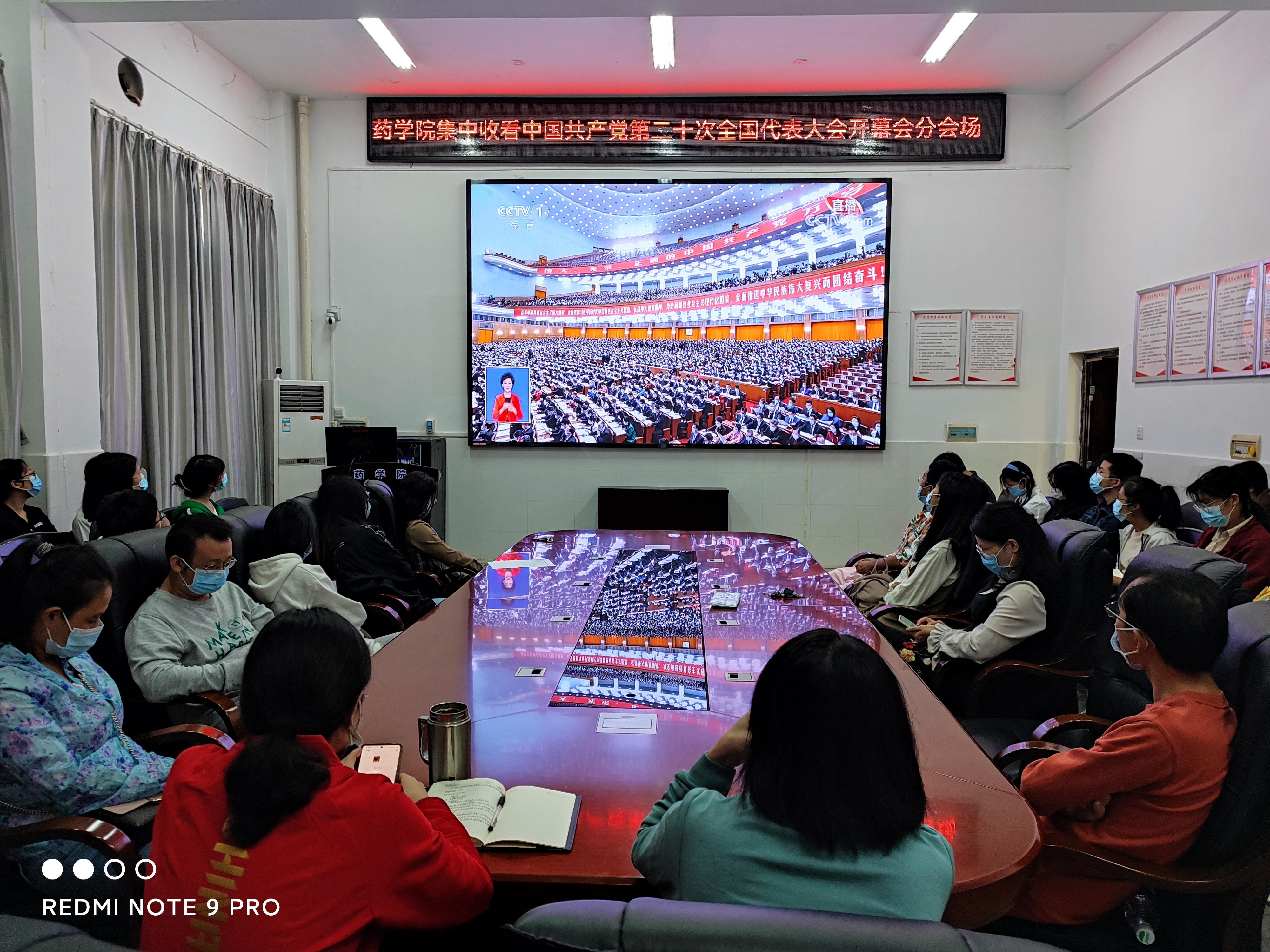 10月16日上午,伟的国际1946bv党委在药学楼B101会议室组织集中观看第二十次全国代表大会开幕会,党委副书记陈健平主持,师生代表65人参加。
