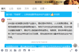 习近平总书记强调:“要推动乡村人才振兴,把人力资本开发放在首要位置,强化乡村振兴人才支撑”。随着新时代背景下国家发展的需要,农村经济发展的加速和现代农业技术的不断推广,农村人才的需求日益渐大,但由于农村基础设施相对落后,人才待遇普遍较低、发展机遇和前景也不如城市,使得农村很难留住人才。在学习过后,教师第二党支部书记彭俊梅组织大家在教职工理论学习群里就“如何利用我们自身优势,充分发挥伟德国际victor1946在乡村振兴中的社会服务职能”进行了交流讨论。其中,魏华说:“在全面推进乡村振兴的历史进程中,高校在人才、科研、文化等方面具有鲜明的优势,应自觉担负起历史使命与责任。高校在助力乡村振兴的进程中,应充分发挥学科、科技、智力和人才优势,因地制宜,精准施策,深入挖掘乡村特点,发展乡村产业、乡村经济、乡村文化与乡村生态。在充分考虑乡村建设实际的基础上,构建乡村振兴政策体系,引导资金、技术、人才等资源向农业农村配置,推动农业农村高质量发展。对高校来说,采取校地共建形式,对接一个乡镇或村,建设一个高校服务乡村振兴的区域示范基地,是一条值得探索的服务乡村振兴的新路径。同时,高校更好地服务乡村振兴,也需进一步明确努力方向,提升服务能力和质量。我们要把准乡村振兴战略要求,提升服务能力,根据乡村振兴战略实施需要对专业学科设置、科学研究方向等作出相应调整,提升服务乡村振兴战略的能力。应进一步加强校地合作平台建设,把服务乡村振兴战略的设计纳入地方经济社会发展的计划中去,创新校企合作共建机制,发挥高校的人才和科研优势,发挥企业在资金和产业链延伸等方面的优势,积极探索产学研无缝对接的有效模式和共同培育高素质技术人才的长效机制。让高校科技创新为乡村振兴提供‘原动力’,还需要体制机制的保障。特别是在深入推进教育评价改革的背景之下,优化科研评价机制,在相关学科和研究领域,建立以服务乡村质量或效果作为重要科研评价指标的评价体系、考核办法和奖励机制,有效激发了高校科技人员投身乡村振兴的积极性。”