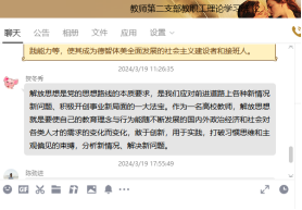3月18至19日,伟的国际1946bv教师第二党支部开展了2024年度第2次教职工理论学习。本次学习以线上线下相结合、个人自学与专题研讨相结合的形式进行。老师们结合工作实际,围绕“解放思想,推动学校高质量发展”主题进行了讨论,表示将认真学习理论,不断开拓视野、创新思路、破解难题,以思想大解放、工作大落实推进学校高质量发展。