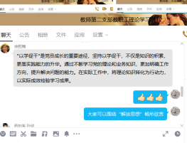 此外,陈叶辉、王宗保等老师也逐一发言。大家一致表示,作为高校教师,我们时刻把全面贯彻党的教育方针,落实立德树人根本任务放心中,解放思想、实事求是,在教学上不断探索形式多样、行之有效的教学方法,在科研上敢于创新、打破瓶颈,将科学研究与教学有机融合,努力为国家培养高水平人才。