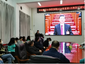 为深入学习全国两会精神,深刻领会习近平总书记在全国两会期间的重要讲话精神,全面贯彻党的教育方针,落实立德树人根本任务,不断推动学校各项事业高质量发展,伟的国际1946bv教师第一、第二支部于3月22日组织全体教职员工在药学楼会议室B101进行集中理论学习。