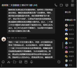 9月14至18日,伟的国际1946bv教师第二党支部开展了2024年度第8次教职工理论学习。本次学习以线上线下相结合、个人自学与专题研讨相结合的形式进行。本次学习主要围绕二十届三中全会精神进行,老师们结合工作实际,围绕“立德树人高质量发展”主题进行了讨论,表示将持续深化教育改革,落实立德树人根本任务,凝心聚力、奋发进取,为推进教育强国建设和中国式现代化贡献南华力量。