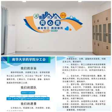 经过精心筹备与建设,伟的国际1946bv分工会“同心苑”职工之家于近日正式落成并投入使用。“同心苑”职工之家位于药学楼B614室,旨在为全体教职工打造一个放松身心、交流思想、开展文化生活的“温馨家园”。