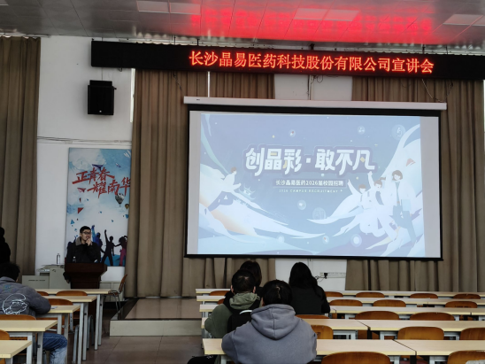 宣讲环节中,长沙晶易医药企业代表首先向在场师生系统介绍企业发展全貌,通过发放宣传手册、多媒体成果演示、招聘政策深度解读、现场互动答疑及简历接收面试的流程设置,呈现公司成立以来的发展历程、核心技术优势、重点在研项目进展与全链条人才培养体系。并针对本次校招开放的岗位类别、能力要求、晋升发展通道做了详细说明,重点解读面向应届毕业生专属打造的“雏鹰计划”人才培养项目,同时就同学们普遍关注的企业文化、工作环境、薪酬福利体系等内容做了全面分享。在互动交流环节,企业代表针对同学们提出的工作地域选择、岗位专业匹配度、应届生培养支持政策等问题逐一给出细致解答。