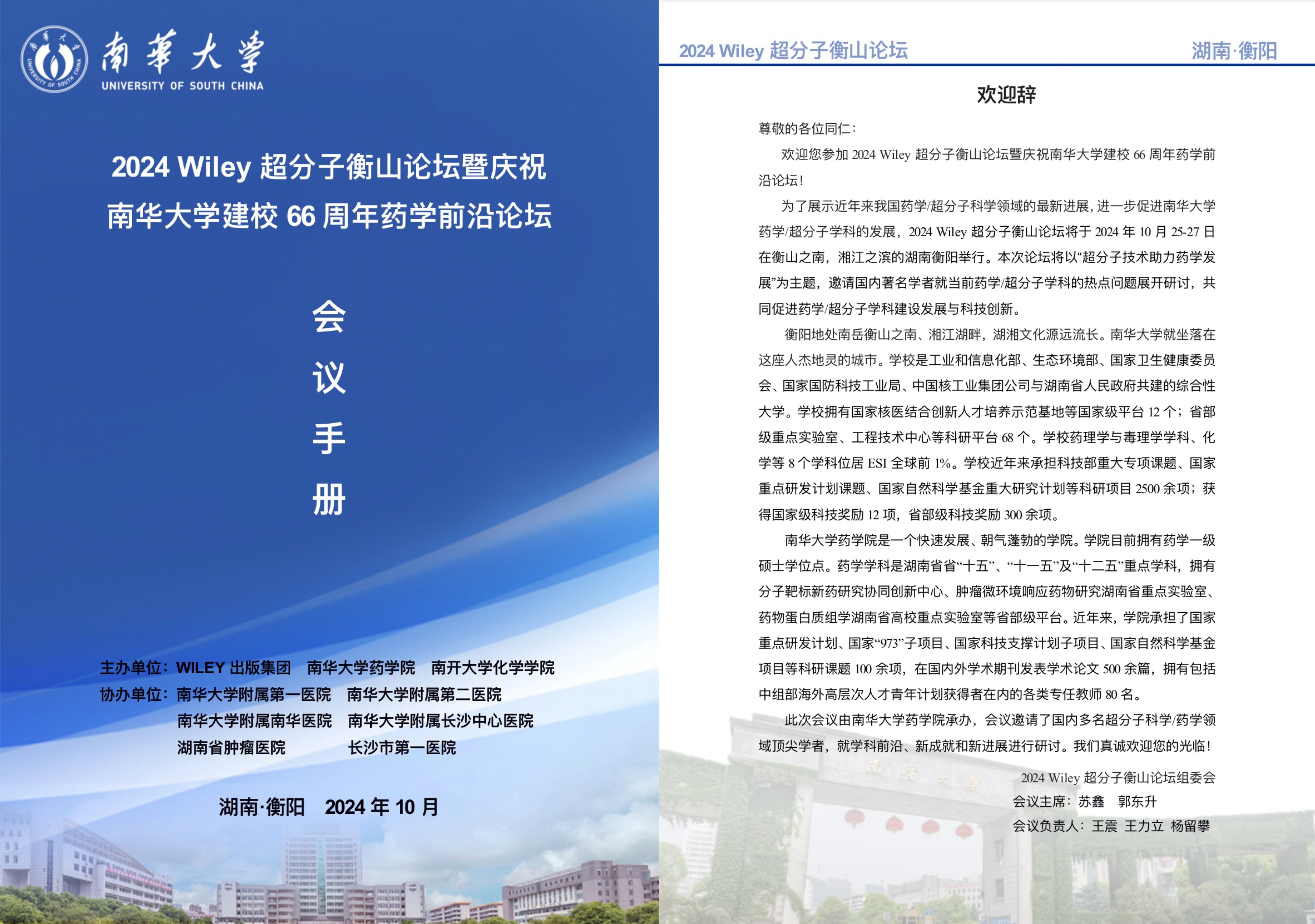 2024 Wiley超分子衡山论坛暨庆祝伟德国际victor1946建校66周年药学前沿论坛会议通知