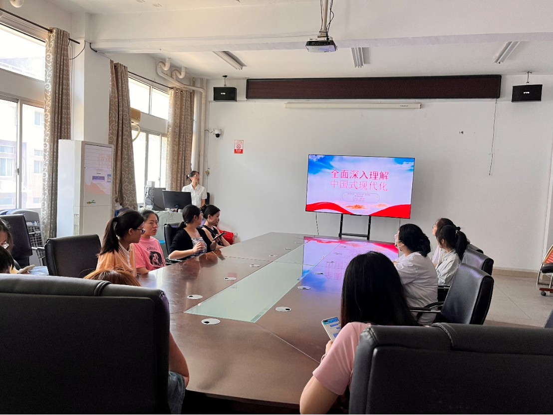 宣讲会上,刘惠美同志带领大家深入学习了二十大报告中关于中国式现代化的重要论述,“中国式现代化是人口规模巨大的现代化,是全体人民共同富裕的现代化,是物质文明和精神文明相协调的现代化,是人与自然和谐共生的现代化,是走和平发展道路的现代化”。